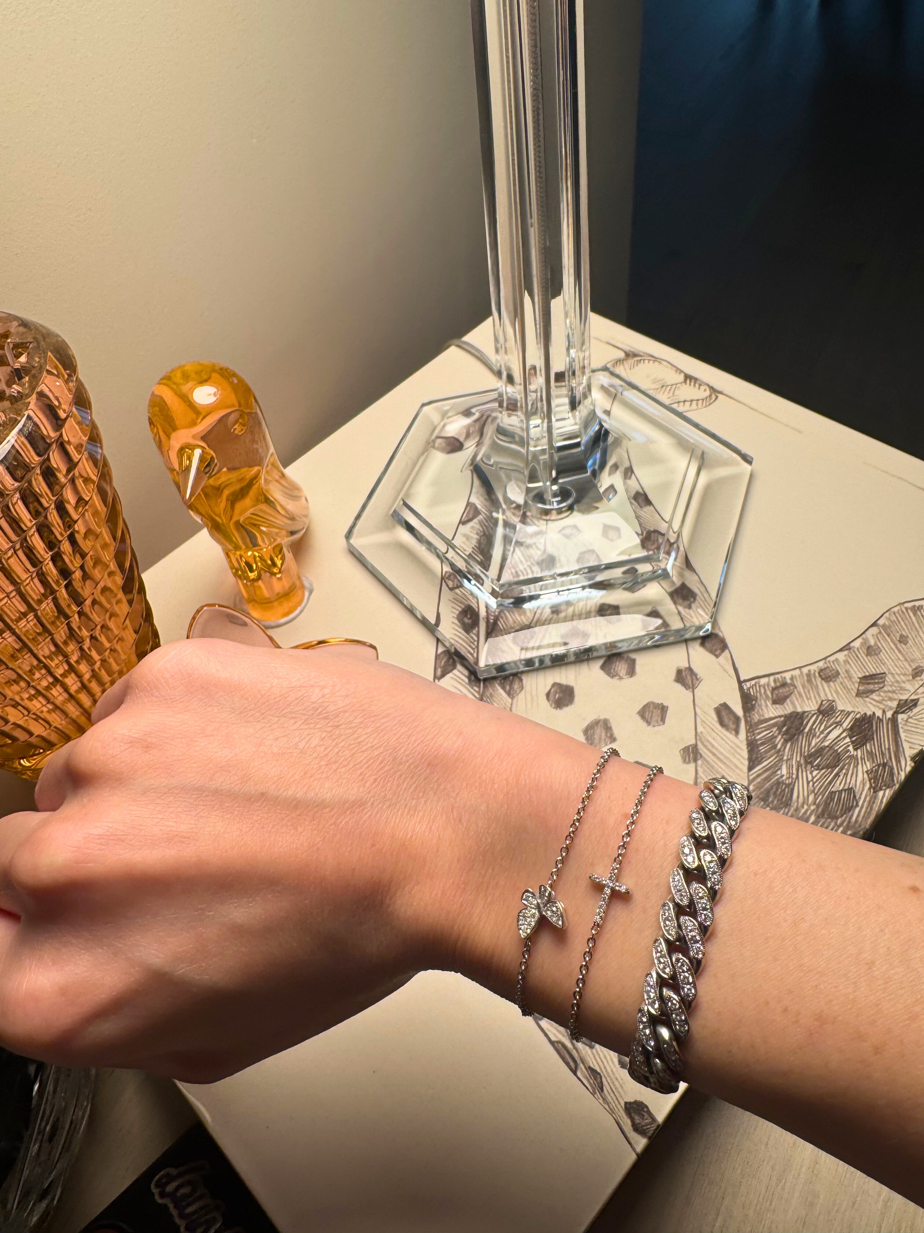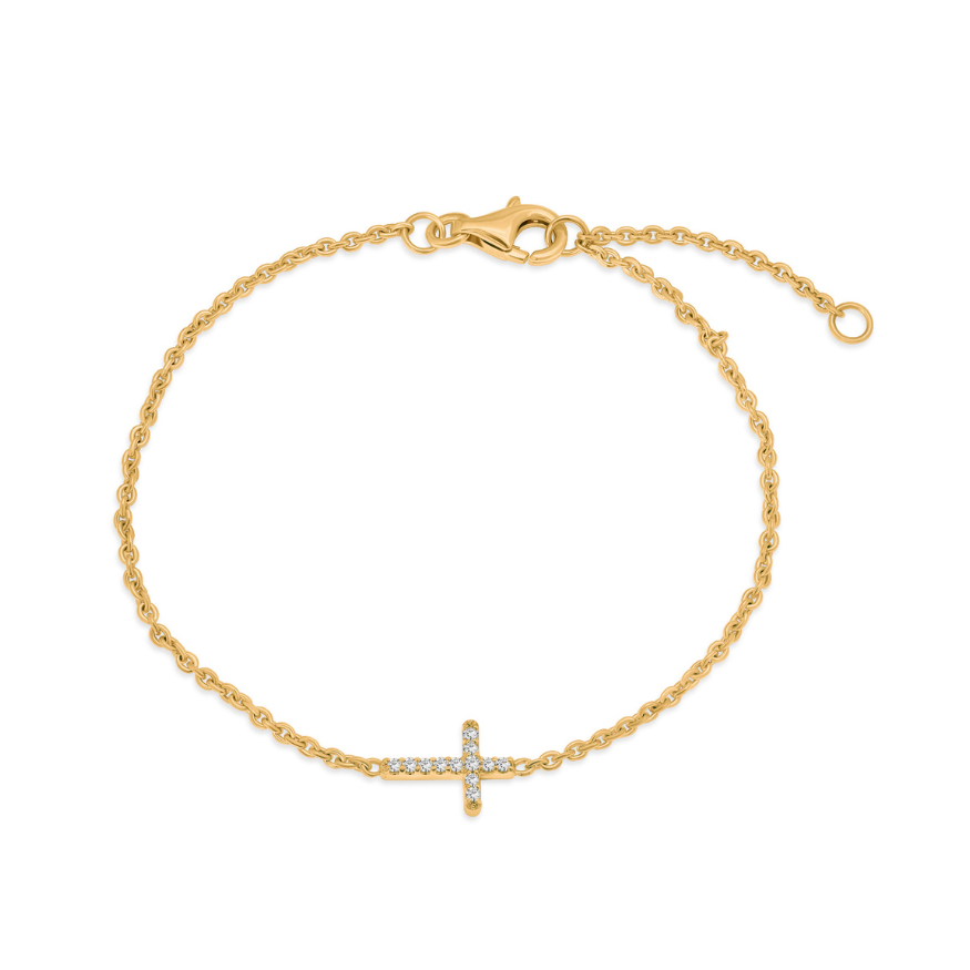 Discover the perfect blend of meaning and style with our Diamond Cross Bracelet. Crafted in luxurious 18k gold, this elegant piece features a diamond cross set from west to east on a dainty chain. The chain includes an adjustable hoop, allowing you to easily customize the size for a perfect fit. Whether layered with other pieces or worn solo on your little one’s wrist, its delicate design adds a touch of sophistication, making it a beautiful and meaningful accessory for any occasion.