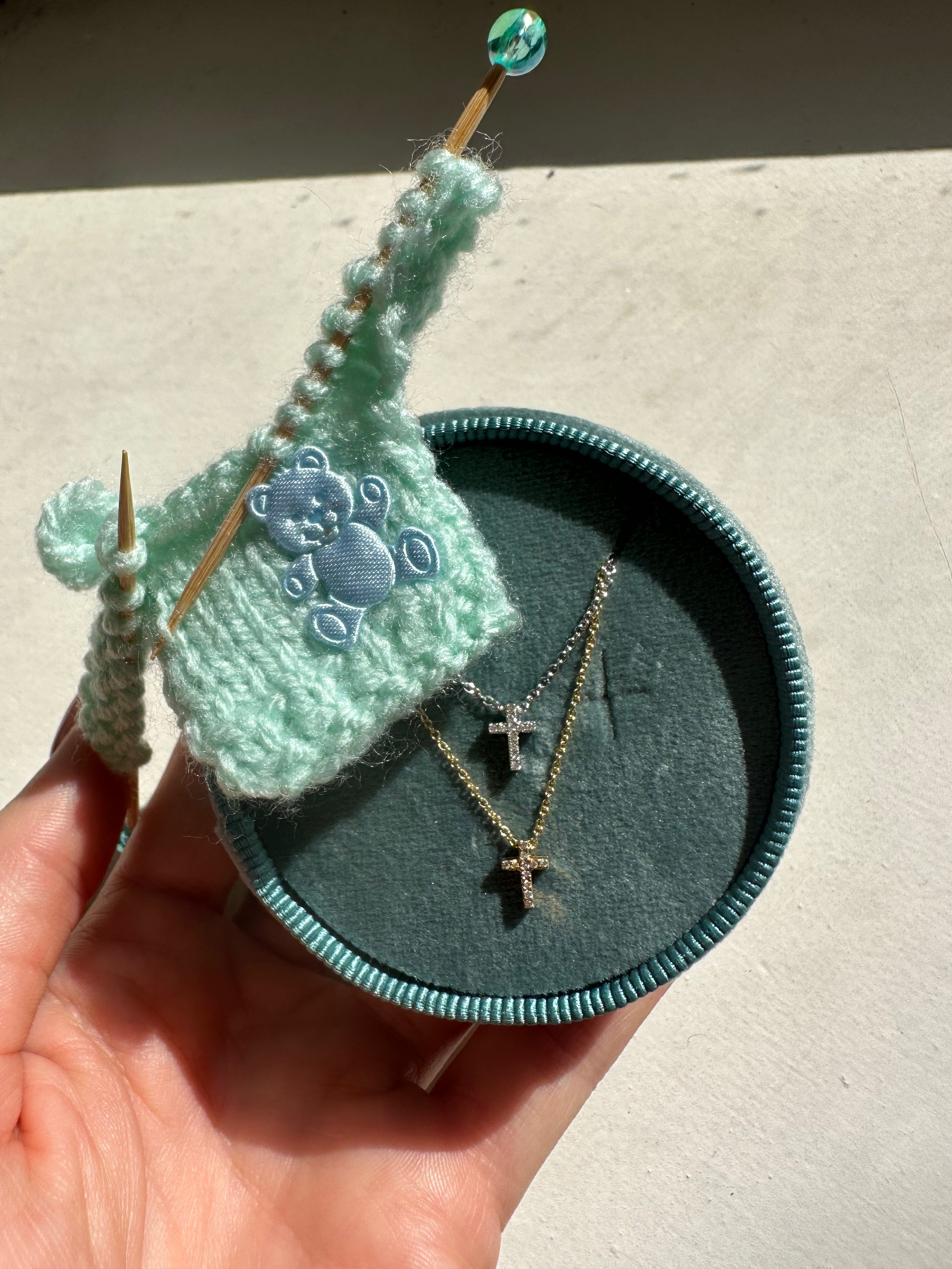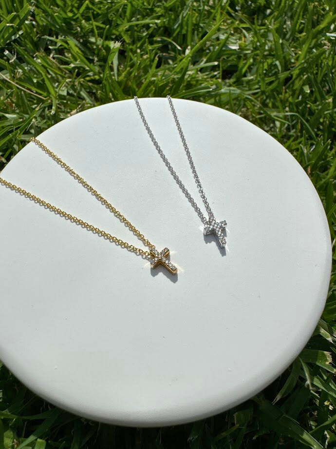 Get our Diamond Cross Necklace Mini, and receive the perfect blend of sparkle and elegance. Crafted from handmade 18K gold, this cross necklace is an essential addition to any everyday jewelry collection. Whether layered with other pieces or worn alone, it exudes a timeless charm. Gift a meaningful treasure that beautifully combines spirituality and style. The adjustable chain is both sturdy and intricate, ensuring a comfortable fit that lasts. Your little one will shine with this stunning cross necklace, enhancing their natural glow with every smile! Discover the beauty of our Diamond Cross Necklace Mini today.