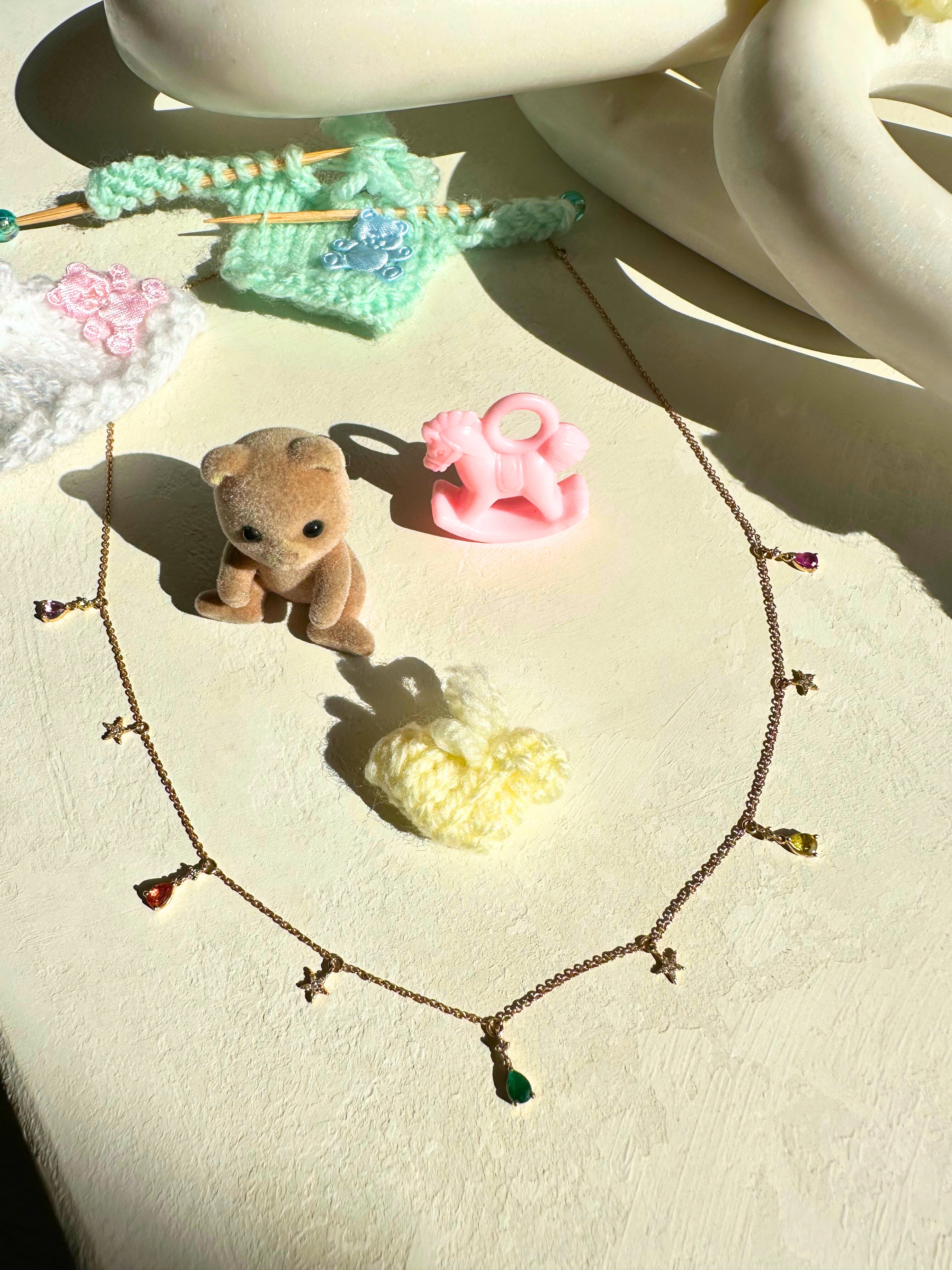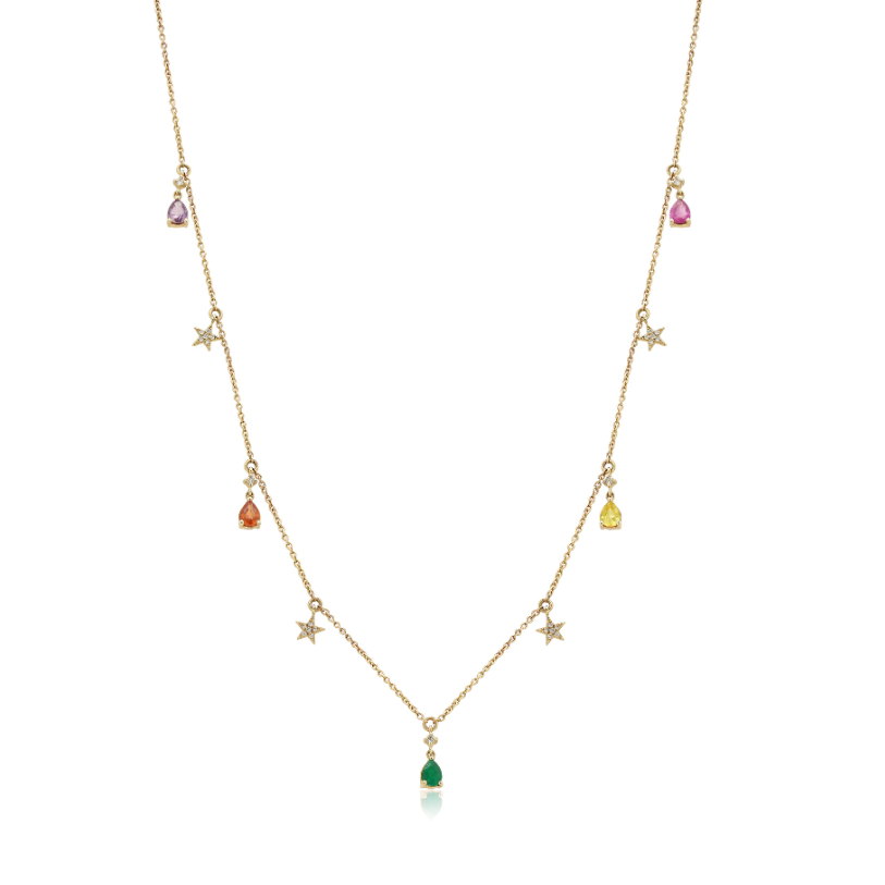 Let your little one's spirit shine with our vibrant Sapphire and Diamond Star Necklace! This joyful piece features a dazzling array of colorful sapphires and shimmering diamonds, creating the perfect blend of color and sparkle that’s simply irresistible. Crafted from high-quality 14K gold, this necklace is more than just an accessory; it’s a heartfelt reminder that your little one is your star and your rainbow. The playful star design will light up her look and her heart!