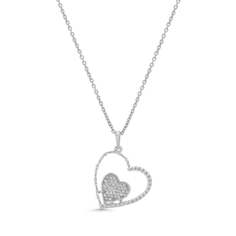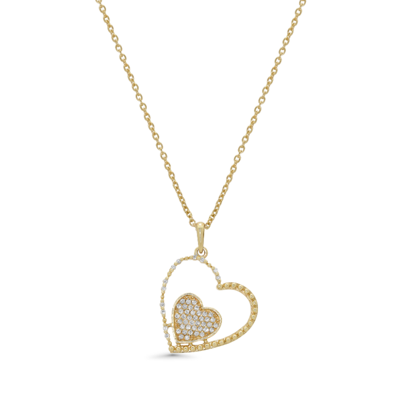 Embrace the beauty of love with our stunning Two Hearts in One Diamond Necklace. This unique design features a sparkling diamond heart nestled within a larger heart, beautifully crafted with half dazzling diamonds and half intricate miligrain detailing. Made from luxurious 14K gold, this necklace is a timeless piece. We cannot think of any other jewelry piece that symbolizes the deep connection between two souls more!